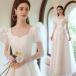 ホワイト ワンピース ウェディングドレス 挙式 ドレス 披露宴 結婚式ドレス 二次会 パーティードレス パフスリーブ ロング丈ドレス 白 プリンセスドレス