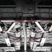 マフラーのリアセクションを外し、センターブレースを通していきます。