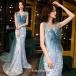 パーティードレス マーメイドドレス イブニングドレス タイト ノースリーブ ロング丈ドレス ステージドレス オフショルダー 肩出し スパンコール キラキラドレス