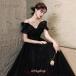 イブニングドレス オフショルダー 黒 ロングドレス ブラック 発表会ドレス キレイめ パーティードレス ロング Aライン Vネック 結婚式ドレス 二次会ドレス