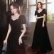 イブニングドレス 黒 ベロア ベルベット スパンコール キラキラドレス 発表会ドレス ロングドレス パール エレガント パーティードレス ブラック パフスリーブ