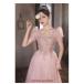 イブニングドレス ピンク キラキラドレス 結婚式ドレス 二次会ドレス パフスリーブ パール プリンセス風 ロングドレス 発表会ドレス パーティードレス