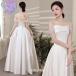 オフショルダー 白 ウェディングドレス サテン Aライン ロングドレス ピアノ発表会ドレス 演奏会 海外挙式 二次会ドレス プリンセスドレス 披露宴