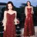 結婚式ドレス 二次会ドレス ワイン赤 ロング丈 キラキラ スパンコール ロングドレス 発表会ドレス Aライン ドレス パーティードレス XS S M L XL XXL XXXL