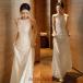 イブニングドレス ノースリーブ ホルターネック ロングドレス 白 スパンコール キラキラ キレイめ 発表会ドレス ホワイト 演奏会ドレス パーティードレス 結婚式