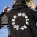 アメリカの某マフィア映画を象徴するWORLD IS YOURSをオールド文字でドロップしたフードパーカー。全1色。