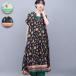 メヒコモチーフプリントワンピース / ロングワンピース レディース 春 夏 半袖 華やか 総柄 メキシコモチーフ スリット 透け感 インド綿100%