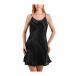 シルクのような肌触り、ロータリーリーフ裾、スパゲッティストラップ、裏地なし、スリップ、フルスリップ
