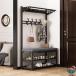 【多機能収納ラック】靴棚と服掛けスタンドが融合したデザインで、靴やスリッパなどの収納だけでなく、カバンや帽子、コート、マフラー、傘、鍵なども一括収納することが可能で、玄関をすっきり見せます