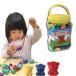 カラフルなくまのコマにひもを通して遊ぶおもちゃです。