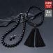 ●材質/天然ジェット(ネックレス・イヤリング10mm珠、念珠8mm珠、6mm珠×2)、房:人絹、ネックレス金具:合金、イヤリング金具:真ちゅう