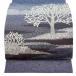 美品 袋帯 秀品 落款あり 樹木 山並み 銀通し 金彩 青紫 お太鼓柄 正絹 中古