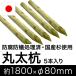 国産 杉 丸太杭 (防腐防蟻処理済)約1800mm×φ80mm(5本入り)(植栽/樹木支柱/杭/ローリング/丸棒杭/公園/ACQ/木材/木/公共/植木支柱/造園)