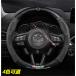 マツダ Mazda マツダ3 マツダ6 CX-3 CX-4 CX-5 CX-8 CX-30 ロゴ入り ハンドルカバー ステアリングホイールカバー カーボン革+スエード素材 通気滑り止