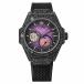文字盤は妖しさを秘めたパープルで彩り、外周にいくほど黒く染まるグラデーションにすることで“紫電”を操る麗奈のスタイルを表現。