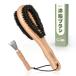 一本二役のデザインは、毛玉の種類によって両面を使い分けて使えます。様々な角度から毛玉を取れるように毛は輪っか状に植えられています。手柄は天然木を使用しており、持ちやすいように反らせています。なお、紐がついており、色々な場所に掛けられます。