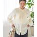 キーワード:ブラウス シャツ レディース ノーカラー フリル 長袖 無地