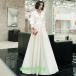 カラードレス ファスナー パーティードレス フォーマルドレス ロングドレス 長袖 結婚式 二次会 発表会 Vネック ホワイト サテン スーツ風 ウェディングドレス