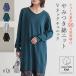 ニット レディース トップス 長袖 チュニック丈 ロング Vネック コットン100% リブ ヒップが隠れる 体型カバー 春 秋 冬「メール便不可」「20」