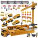 ・【2in1大型建設車両おもちゃセット】ミニカーセットX 6 、大きい音楽収納車X 1、タワークレーンX 1、DIY道路標識X 22、ドラム缶X 4、小柵X 8、大柵X 4、作業員X 2、レールX 1、高品質合金とABSから作っています。安全な素材で、壊しにくいし長持ちになります。
