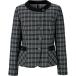 ★商品合計金額3000円(税込)以上送料無料★シルバーラメのさりげない輝きが上品な裏無しジャケット。アシンメトリーデザインで着映え力もUP。●サイズ/9号●カラー/モノトーン●素材/ポリエステル96%・トリアセテート4%●寸法(cm)/バスト95・肩幅39・着丈55・袖丈57●仕様/左胸箱ポケット・両脇挟み込みポケット・右脇スマホポケット・袖ぐり消臭テープ付き・一重仕立て●単位/1着●メーカー品番/AJ0272−30−9