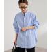 キーワード:ブラウス シャツ レディース コットン スタンドカラー ロング丈 長袖 無地