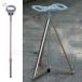 【オープンステップ】左に回してバックルを外します。 スナップを一番上まで押し上げます。 下に押して三脚を広げます。 ハンドルを広げるとシートになります。 杖は椅子に変形して完成です。