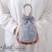 リバティプリント生地を使った巾着ポーチです。口元のクシュッとした感じとふんわりとしたポーチの丸みがなんとも可愛らしいデザインになっています。中には縫込みで大小仕切られたポケットが付いています。持ち手もついているので、バッグとしてもお使いいただけます。ギフトとしても喜ばれる一品です。