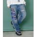 キーワード:ジーンズ デニム デニムパンツ レディース ウエストゴム フルレングス ワイドパンツ 花柄