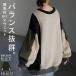 ニット 長袖 レディース トップス セーター 裏毛 スウェット ドッキング 異素材 配色 アシンメトリー ケーブル編み クルーネック 秋 冬「メール便不可」「30」