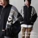 ・両サイドに民族風の幾何学柄をジャガードで表現したポリエステル素材のニットを。