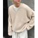 商品名:【ハンドウォッシャブル】ウール混リブ異素材起毛Vネックニット