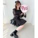 キーワード:ワンピース ショート ミニ丈 フリル フレア リボン 長袖 無地 オフィスカジュアル デート ピクニック レジャー フェス ライブ フェミニン 夏 大人カジュアル
