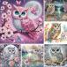 ラインストーンビーズ ハーフ ダイヤモンドアート 刺繍キット ふくろう 幻想的 フクロウ 月夜 花 モザイクアート パズルアート リハビリ 趣味 絵画