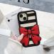白黒ボーダー柄赤いリボンシンプルインパクト大人可愛いスマホケースiPhoneケースiPhone11iPhone12iPhone13iPhone14iPhone15iPhone16