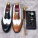 白黒コンビビジネスシューズメンズ2トン内羽根紳士靴ウイングチップエナメル牛革本革革靴ロングノーズレースアップメダリオンヴィンテージ父の日