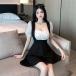 ワンピース レディース ショート ドレス パーティー キャバドレス ミニ丈 白黒 スクエアネック 半袖 ダンス発表会 お呼ばれ ナイトクラブ 春夏 おしゃれ 女子服