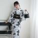 【お仕立て上がり 浴衣3点セット 白黒の重なる小花】