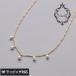 首元に沿うようにさりげなく身に着けられる、繊細なパールのついた短めのネックレス。使用している淡水パールは、サイズ0.2cm〜0.25cmの小さな淡水パール。前方の鎖骨ラインに、この小さな淡水パールが揺れるチャームのようについています。