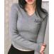 キーワード:ニット セーター レディース vネック ショート丈 ロゴ ワンポイント 刺繍 長袖 無地