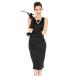 往年の映画スターを思わせる黒一色のタイトワンピースです。
