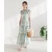 キーワード:ワンピース ノースリーブ プリント フレア ロング 花柄 エレガント キレイめ デート フェミニン 記念日 旅行