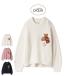 もっちり柔らかい‘ベビモコ’を畦編みにして使用したプルオーバー。胸元にはベアのぬいぐるみとハートのクッション、