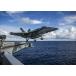 絵画風 壁紙ポスター (はがせるシール式) 戦闘機 F/A-18E スーパーホーネット 空母 離陸 米空軍 キャラクロ UAFT-007A1(A1版 830mm×585mm)<日本製>