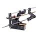 ▼ガイドバーに装着する目立て機です。目立て角度や深さなどを設定し、固定できるので正確な目立て作業が行えます。
