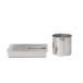 ステンレス板をプレスにより打ち抜き、メッシュ状にしたプレートに大きな孔を開けステンレスカップを嵌まるようにしてあります。