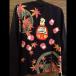 ■フロントにはサイドに家紋に猫を刺繍とプリントでシンプルなデザインに。背面には達磨に乗った笑い猫の姿が刺繍で落とし込まれています。