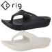 近年、スポーツ界を中心に注目が高まっているリカバリーサンダル。日本で初めてのリカバリーサンダルブランドであるrigは、日本人の足の特徴である「甲高」「幅広」に着目し、日本人にとって最も快適な履き心地を追求しました。衝撃吸収性が非常に高く、足腰のストレスを解放して疲労を回復へと促します。特に立ち仕事や運動後などは翌日に疲れを残さないよう足を最大限にリラックスさせます。また、硬質サンダルに比べて足腰への負担が軽減されるため、腰痛持ちやヘルニアの方の普段履きにも適しています。運動後にソックスを脱いで最大限リラックスできるフリップフロップタイプ。5本指ソックスを愛用している方にもオススメです。また、運動後に限らず、ビーチなどへのバケーションのお供にも最適です。