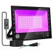・【最新版紫外線ブラックライト】150W紫外線投光器は288個高輝度なUV-LEDチップ採用して、98%高透光率の強化ガラスと150°までの発光角度で、ブラックライトはピーク波長395-405nmの光源です。紫ではなく肉眼で藍紫色あるいは青色が見えます。改良版の紫外線投光器は強化ガラスを採用し、強化ガラスは旧版のガラスと比較して、耐圧強度・耐衝撃性もアップします。新型のLEDチップを採用し、従来品より明るく、安定しています。長距離&広い放射範囲、今までの投光器より広い範囲の光源を提供いたします。仕様:サイズ: W330×H250×D50mm ケーブル:1.8M 入力電圧:AC85-265 防塵防水:IP66 放熱設計:アルミ材質と櫛形ヒートシンク 定格周波数:50/60Hz 波長:395?405nm、UVAレベルです.