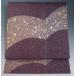 深紫・暗紅色の染め分け地に金蒔き、裂取に金の吹き寄せ、切れ箔、流水模様、 薄グレーの植物紋が染められた牛首紬の洒落袋帯です。 帯裏の生地も牛首紬地を使用しています。
